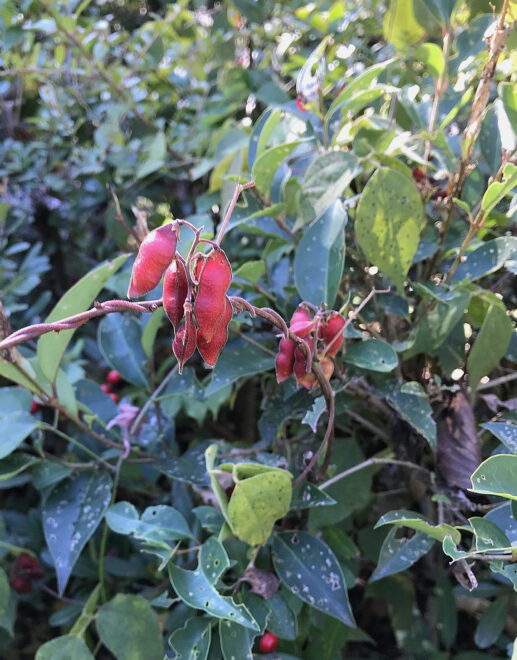 秋に黄色の花を咲かせて晩秋に鮮やかな赤いさやの豆を熟します。