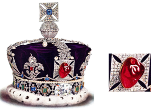 現在この宝石は、大英帝国王冠の真ん中に輝いていますが、実はルビーではなくスピネルである事がわかっています。