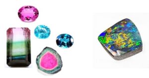 10月の誕生石は、ブラック・グリーン・ピンク・パライバブルー・ウォーターメロンなど様々な色合いを楽しめるトルマリンと虹色の輝きが魅力のオパールです。