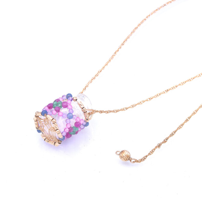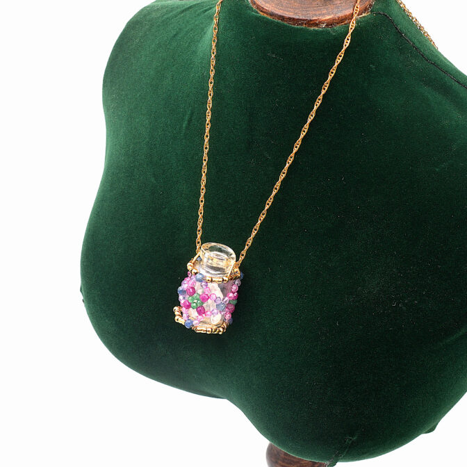 天然石の花織アロマペンダント《エメラルド・ルビー》14kgf