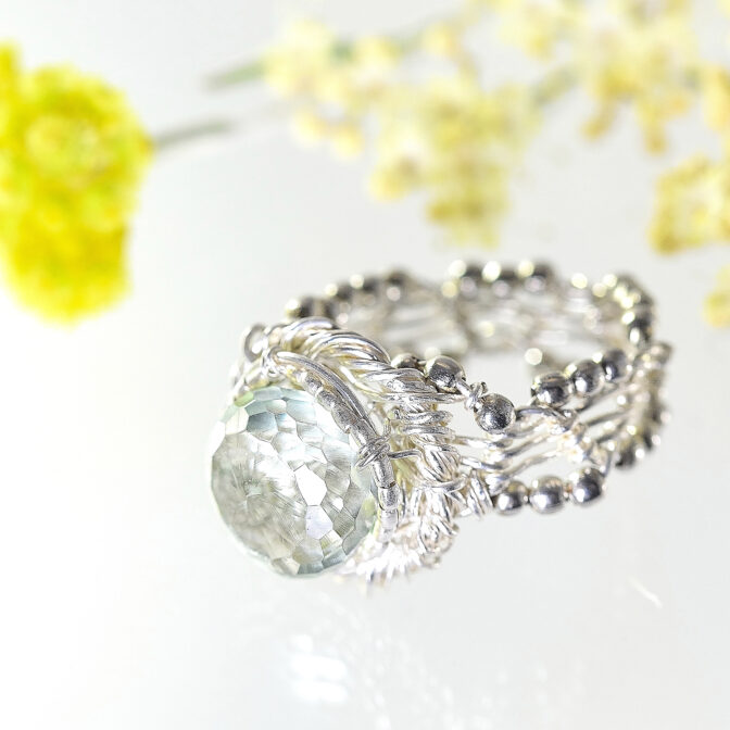 高品質なシルバービーズと日本製のsilver950の銀線でレースのように編み込みました。細かく作り込みました。