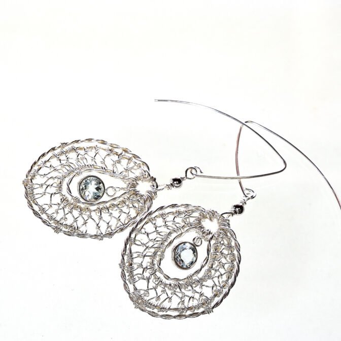 あったとしても、細いワイヤーで緩いフープを繋いでいく作りになっており、当店のようにしっかりと目の詰んだ銀のレースはなかなか無いです。