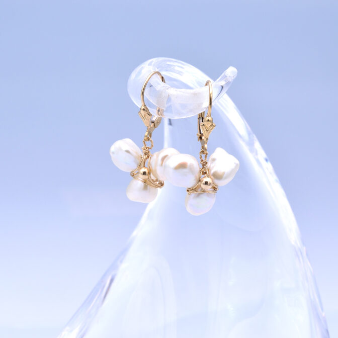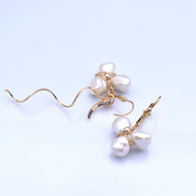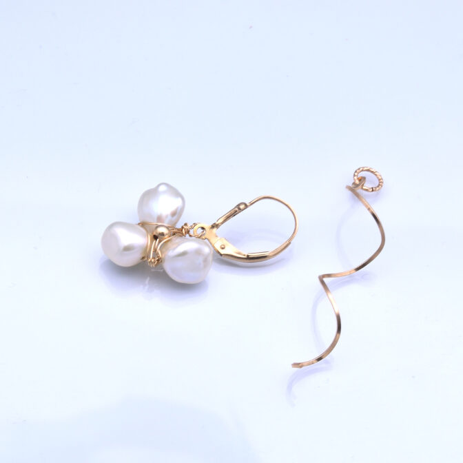 《淡水パール》ミツバアケビの花ピアス14kgf【3way】