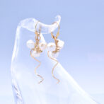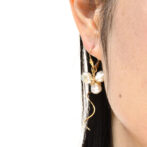 スクエアのゴールドワイヤー部分は取り外すことができますので、花モチーフのみ、また片方だけチェーンを垂らす3wayで付けていただく事ができます。