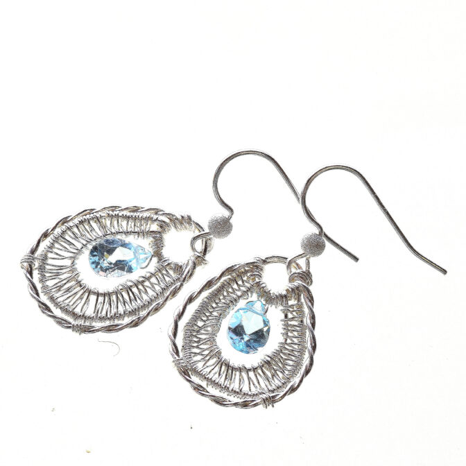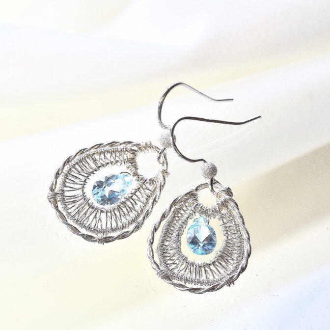 雫の編み込みピアス《ブルートパーズ・Silver925 》